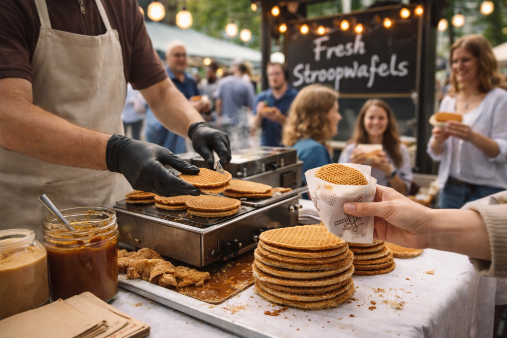 Experience the deliciousness of our fresh stroopwafels, order online or contact us for events.